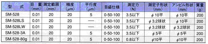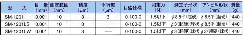 測(cè)量頭及測(cè)量砧除陳列出來的型號(hào)外,標(biāo)準(zhǔn)測(cè)量范圍為終壓2.5N以下,而為0.4N(終40GF)低范圍型也有;