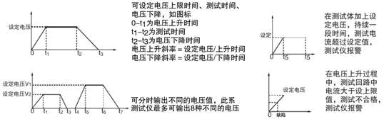 ·電壓上升時間、電壓下降時間、測試時間、暫停時間可任意設定