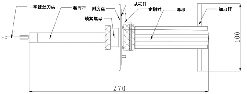 4、在調(diào)零時,松開扭矩起子上的鎖緊螺母,轉(zhuǎn)動刻度盤,使定指針對準(zhǔn)零位,然后旋緊扭矩起子上的鎖緊螺母。