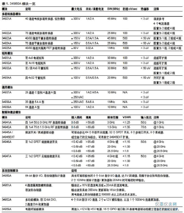 主要特性與技術(shù)指標(biāo) 8 插槽主機(jī),有21 種插入式模塊可供選擇 具有6½位(22 比特)分辨率的內(nèi)置數(shù)字萬(wàn)用表 掃描速度高達(dá)1000 個(gè)通道/秒 標(biāo)配LAN、USB 和GPIB 接口,可輕松連接至PC,符合LXI C 類標(biāo)準(zhǔn) 通過(guò)內(nèi)置Web 界面輕松實(shí)現(xiàn)遠(yuǎn)程訪問(wèn) 相比VXI 或PXI 中的同類模塊解決方案,價(jià)格最多降低40% 單個(gè)主機(jī)包含高達(dá)560 個(gè)雙線多路復(fù)用器或4096 個(gè)矩陣交叉點(diǎn) 免費(fèi)的BenchLink Data Logger 軟件可輕松采集并分析數(shù)據(jù)