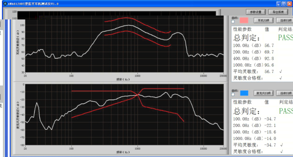 (2)耳機測試頻響范圍:100 Hz~ 10 kHz ;動態(tài)范圍:35 dB~ 135 dB
