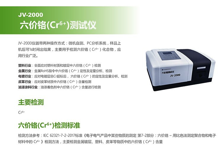 JV-2000對測試電鍍鍍層應(yīng)用廣泛,廣泛用于測試其中的電鍍中的六價鉻