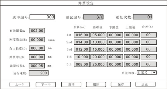 3.2.4 進(jìn)入彈簧參數(shù)設(shè)置和運(yùn)行參數(shù)設(shè)置,輸入彈簧參數(shù),保存后退出。
