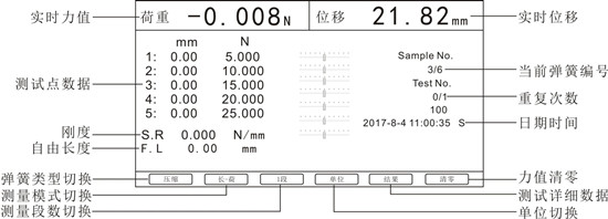 2.2.6 自動(dòng)原點(diǎn):按下此鍵,彈簧會(huì)回到自由狀態(tài),并記錄自由長(zhǎng)度。