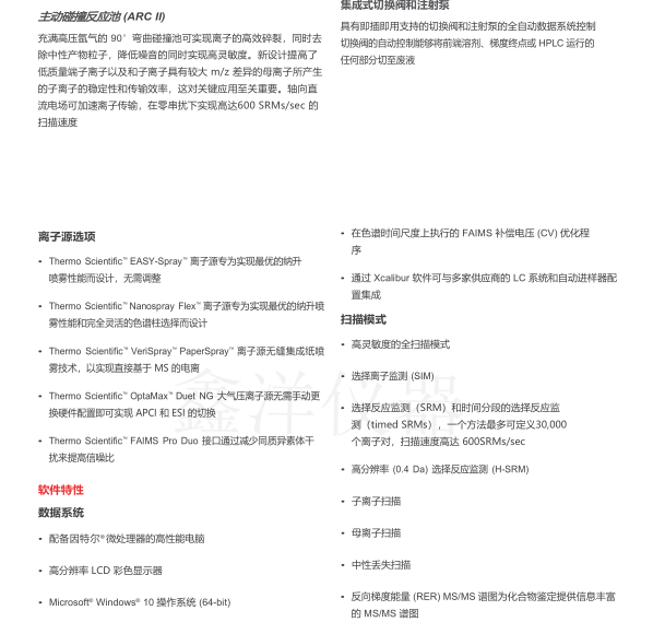 TSQ Quantis Plus 質(zhì)譜儀無縫集成行業(yè)領(lǐng)先的定量分析軟件、(U)HPLC 和 HPIC 系統(tǒng)以及樣品制備解決方案;它還提高了各種分子化合物的靶向篩查和定量分析工作流程的效率。其他優(yōu)點(diǎn)包括: