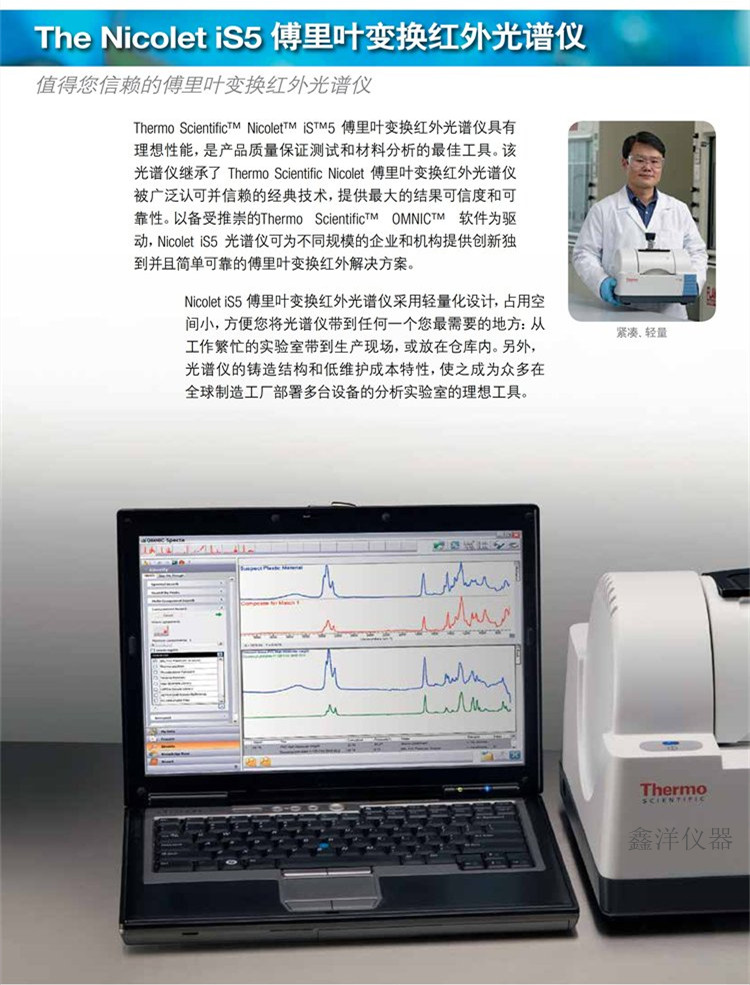 Nicolet™iS™5 傅里葉變換紅外光譜儀具有理想性能,是產(chǎn)品測(cè)試和材料分析的工具。 該光譜儀采用輕量化設(shè)計(jì),占用空間小,方便您將光譜儀帶 到任何一個(gè)您需要的地方:從工作繁忙的實(shí)驗(yàn)室?guī)У缴a(chǎn)現(xiàn)場(chǎng),
