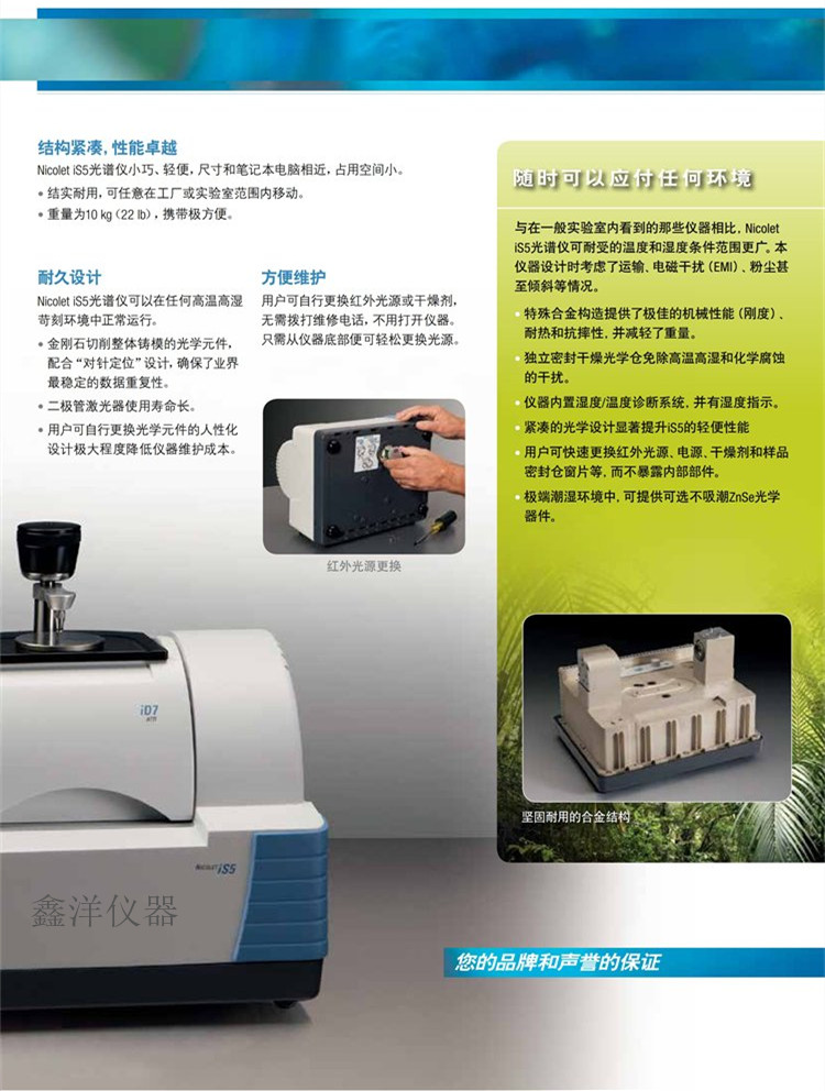 結(jié)構(gòu)緊湊,性能:尺寸與筆記本電腦相近,移動(dòng)、攜帶方便 耐久設(shè)計(jì):Nicolet iS5光譜儀可以在任何高溫高濕苛刻環(huán)境中正常運(yùn)行 整體鑄模的光學(xué)元件,配合“對(duì)針定位”設(shè)計(jì),確保穩(wěn)定的數(shù)據(jù)重復(fù)性 二極管激光器使用壽命長 方便維護(hù):用戶可自行更換紅外光源或干燥劑,不用打開儀器。