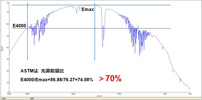 2.6 紅外光源:高能量、長壽命的中遠紅外光源,按傅里葉變換紅外光譜儀檢定規(guī)程測定,能量比E4000/Emax>60%;質(zhì)保10年;