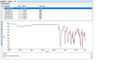 2.13紅外光譜比較軟件:提供對產(chǎn)品真?zhèn)蔚蔫b定最為有用的比對軟件(光譜比較軟件),可最大程度降低人為因素對兩張光譜的相似程度的比較結(jié)果的誤判;