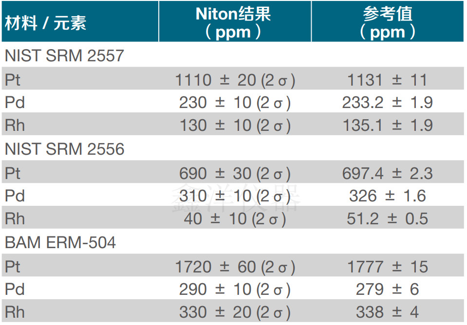 此次發(fā)布的3款新產(chǎn)品均通過(guò)了國(guó)際第三方實(shí)驗(yàn)室(Fluxana公司)的能力驗(yàn)證,下表為Niton