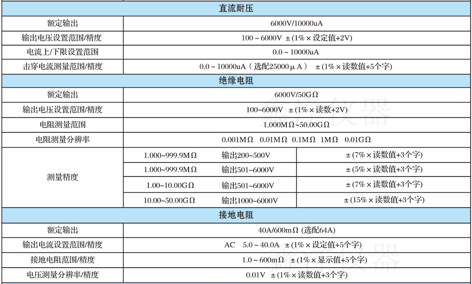 直流耐壓 絕緣 接地 泄漏 功率 低壓啟動 開短路測試