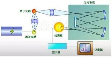 利用等離子體激發(fā)光源(ICP)使試樣蒸發(fā)汽化,離解或分解為原子狀態(tài),原子可進(jìn)一步電離成離子狀態(tài),原子及離子在光源中激發(fā)發(fā)光。利用分光系統(tǒng)將光源發(fā)射的光分解為按波長排列的光譜,之后利用光電器件檢測光譜,根據(jù)測定得到的光譜波長對試樣進(jìn)行定性分析,按發(fā)射光強(qiáng)度進(jìn)行定量分析。