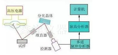 X射線管產(chǎn)生入射X射線(一次X射線),激發(fā)被測樣品。受激發(fā)的樣品中的每一種元素會(huì)放射出二次X射線,并且不同的元素所放射出的二次X射線具有特定的能量特性或波長特性。探測系統(tǒng)測量這些放射出來的二次X射線的能量及數(shù)量。然后,儀器軟件將探測系統(tǒng)所收集到的信息轉(zhuǎn)換成樣品中各種元素的種類及含量。