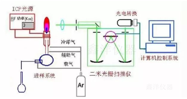 組成:ICP-AES由高頻發(fā)生器、蠕動(dòng)泵進(jìn)樣系統(tǒng)、光源、分光系統(tǒng)、檢測器(CID)、冷卻系統(tǒng)、數(shù)據(jù)處理等組成。