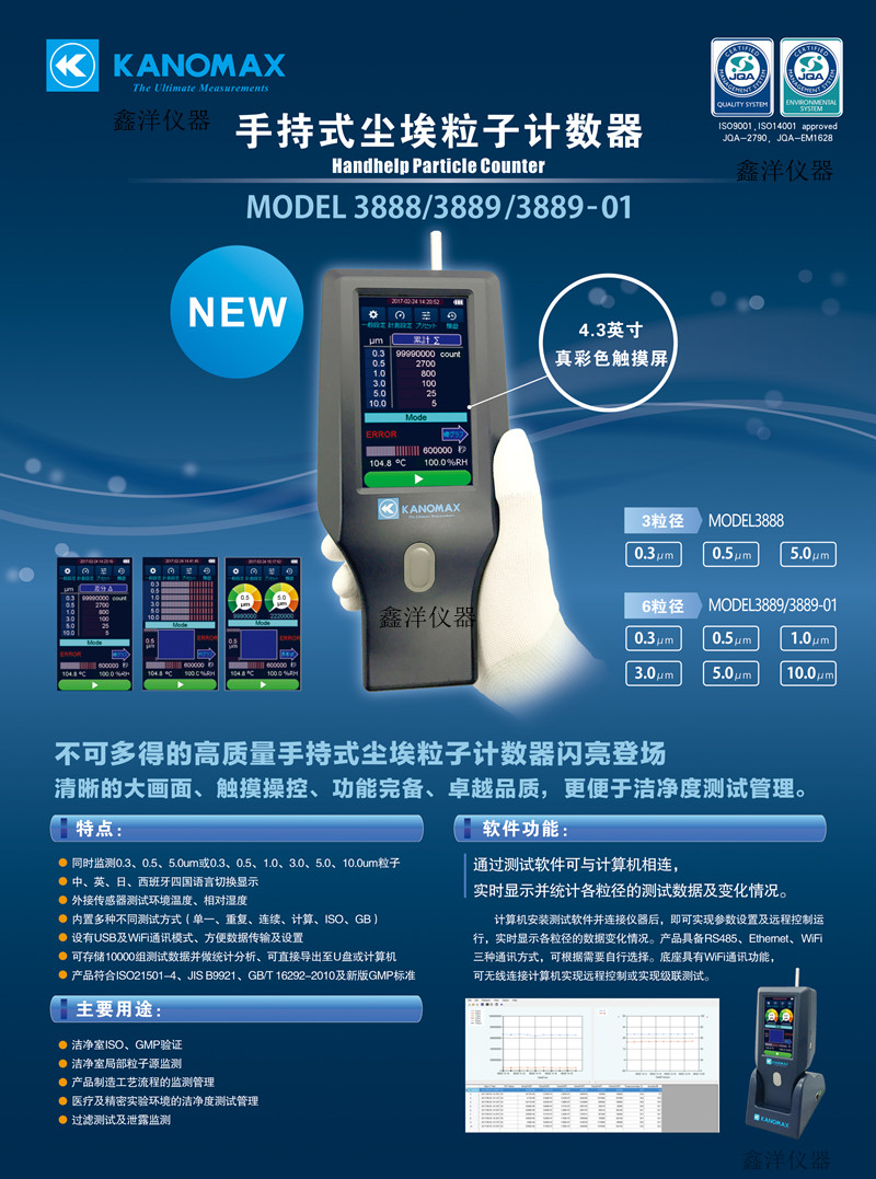 主要用途:潔凈室ISO、GMP驗(yàn)證、潔凈室局部粒子源監(jiān)測、產(chǎn)品制造工藝流程的監(jiān)測管理、醫(yī)療及精密實(shí)驗(yàn)環(huán)境的潔凈度測試管理、過濾測試及泄露監(jiān)測