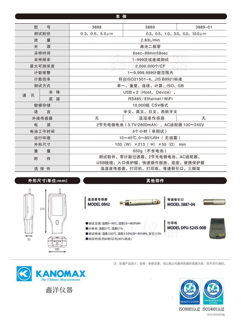 Kanomax塵埃粒子計數(shù)器 3888/3889/3889-01