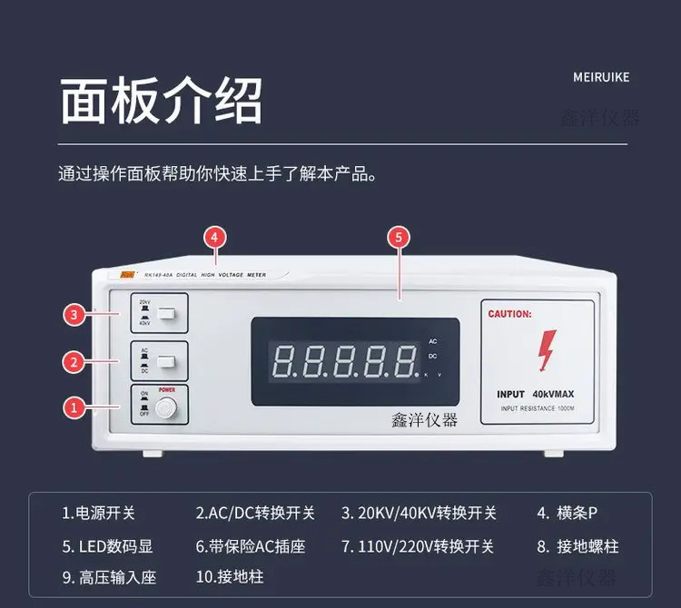 美瑞克數字高壓表RK1940-1 RK1940-2 RK1940-3 RK1940-4 RK1940-5 數顯電壓表