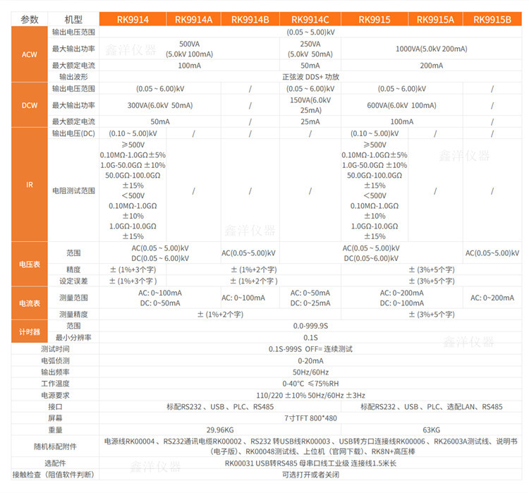 美瑞克大電流交流耐壓測(cè)試儀 RK9915B AC 1000VA 200mA  DC 600VA 100mA